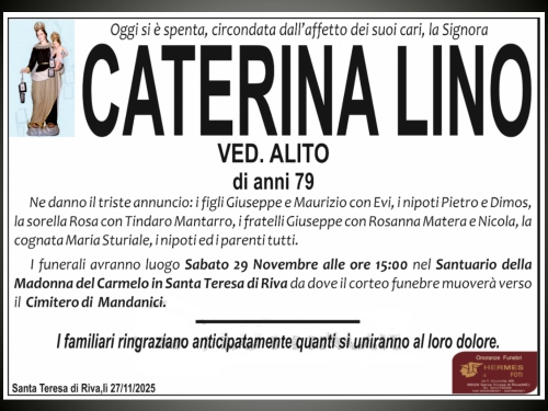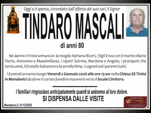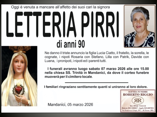 Necrologi Memoria digitale Con questo link vogliamo dare l'ultimo saluto ai nostri concittadini che purtroppo ci lasciano e nello stesso tempo vogliamo fornire la notizia dell'avvenuto decesso. La morte rappresenta l'unico evento certo e democratico nella vita di ognuno di noi. Rappresentando per la nostra Comunità un momento sociale di tristezza abbiamo ritenuto opportuno condividere la notizia anche con i mandanicioti sparsi per il mondo. Ci limiteremo a inserire soltanto gli annunci funebri che abbiamo reperito affissi lungo le strade e ci auguriamo che siano pochi gli annunci che andremo a mettere sul sito. I nostri concittadini all'estero, qualora lo volessero, potrebbero inviarci notizie analoghe.